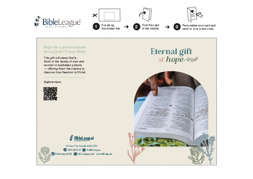 This gift will place God’s Word in the hands of men and women in Australian prisons — offering them the chance to discover true freedom in Christ. Receive your free Nativity ornament with $100+ orders that include a posted card.